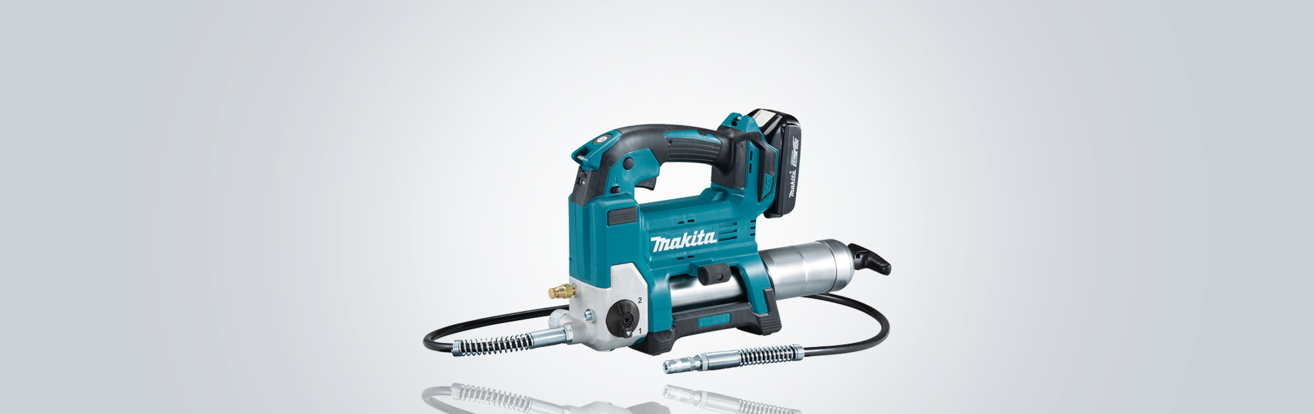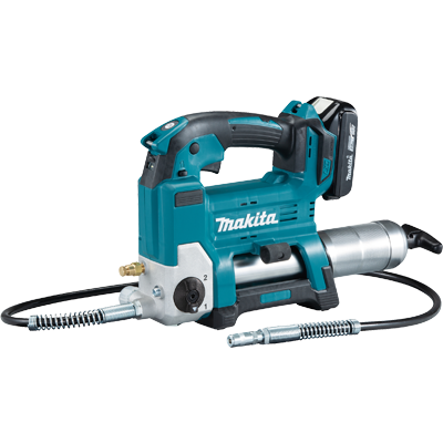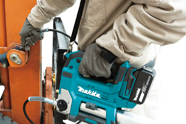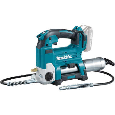 Makita's new LXT Series 18V Cordless Grease Gun DGP180 is perfect tool for lubricating large and heavy machines. Its powerful brushless motor delivers up to 690 bar pressure. Auto-speed mode allows automatic change of flow rate, which varies according to the internal pressure. Lightweight and compact design makes it nice to use, and lock-on button makes using it longer periods effortless.