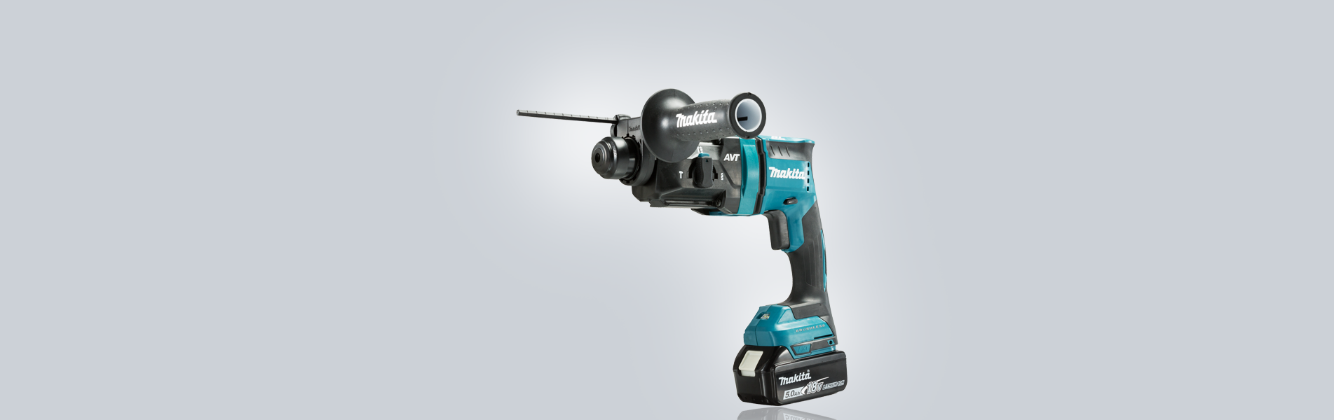 Lightweight and powerful brushless rotary hammer with AVT vibration absorber. The machine creates an impact force of 1,7 J and has maximum capacity of 18 mm.