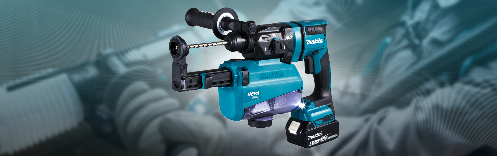 Lightweight and brushless rotary hammer for professional use. Equipped with a convenient dust extractor for cleaner and safer working.