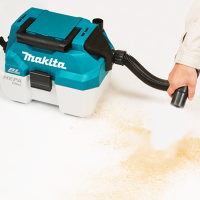 18V LXT® battery powered vacuum cleaner with brushless motor for small cleaning of the construction site and garage. It is also possible to connect the vacuum cleaner to a machine for dust extraction. The vacuum cleaner has two different power ranges and a blow function. Tank size 7.5 L. High-performance HEPA filter to filter even the finest particles efficiently.