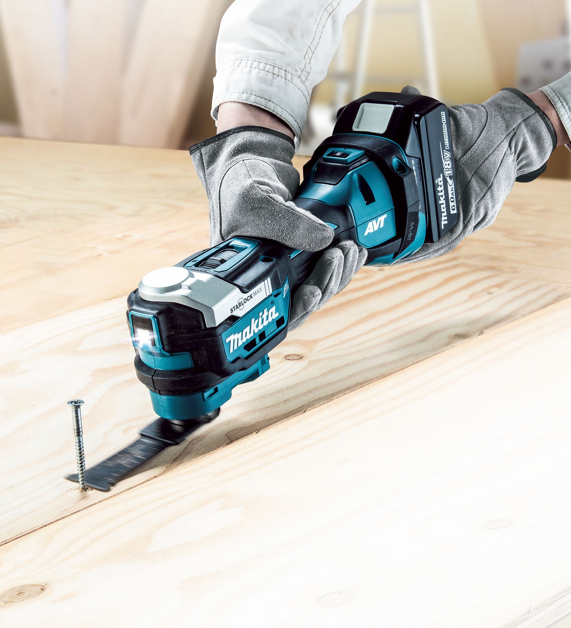 DTM52 is powered by Makita's 18V LXT® batteries. Its brushless motor provides up to 20 000 OPM's (Oscillations Per Minute). The oscillation speed can be selected with 6-step dial from between 10 000 to 20 000 OPM's.