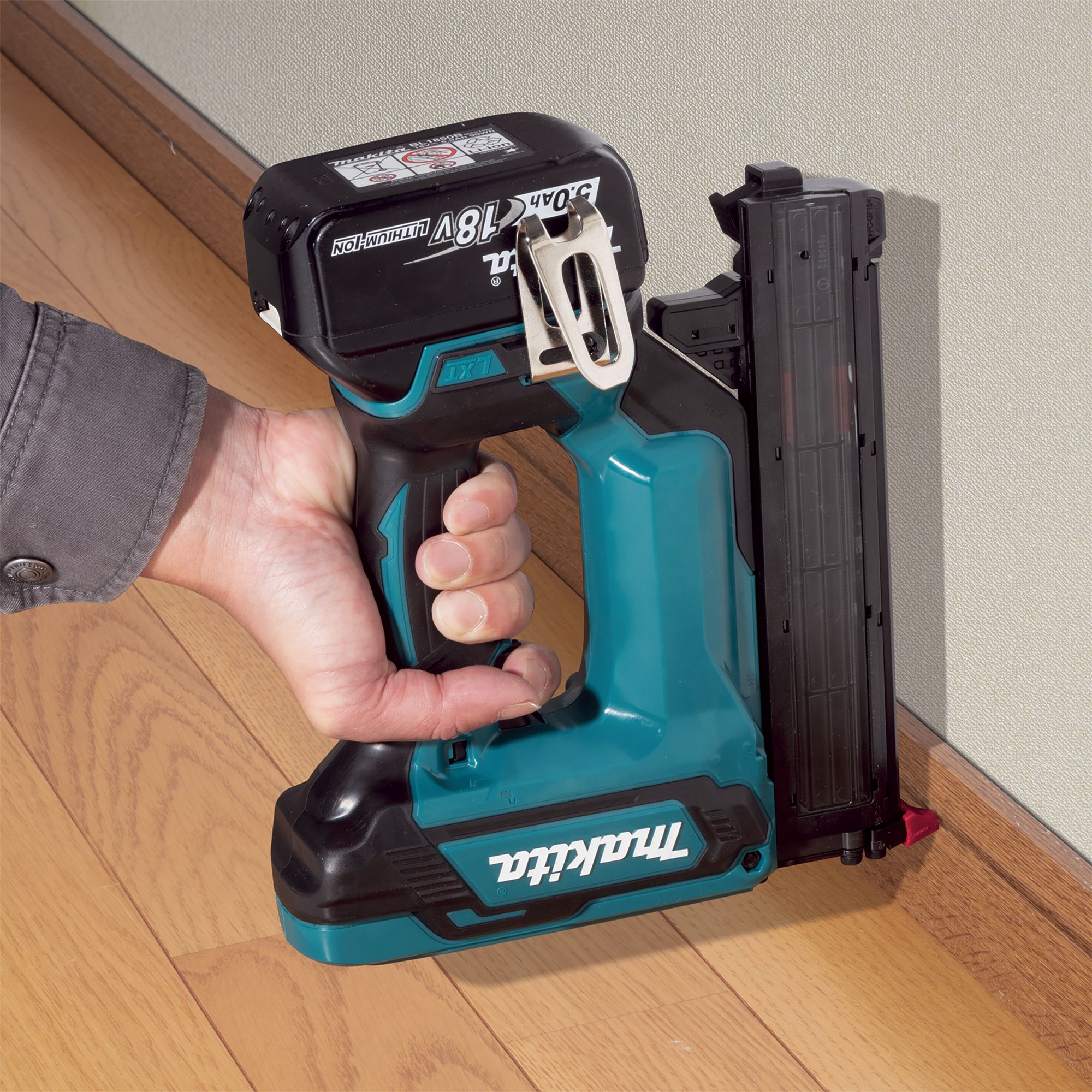 The machine has a precise driving depth adjustment mechanism to enable neat finish. It can also be used for fixing rope trims without the risk of the nail pushing through the rope.