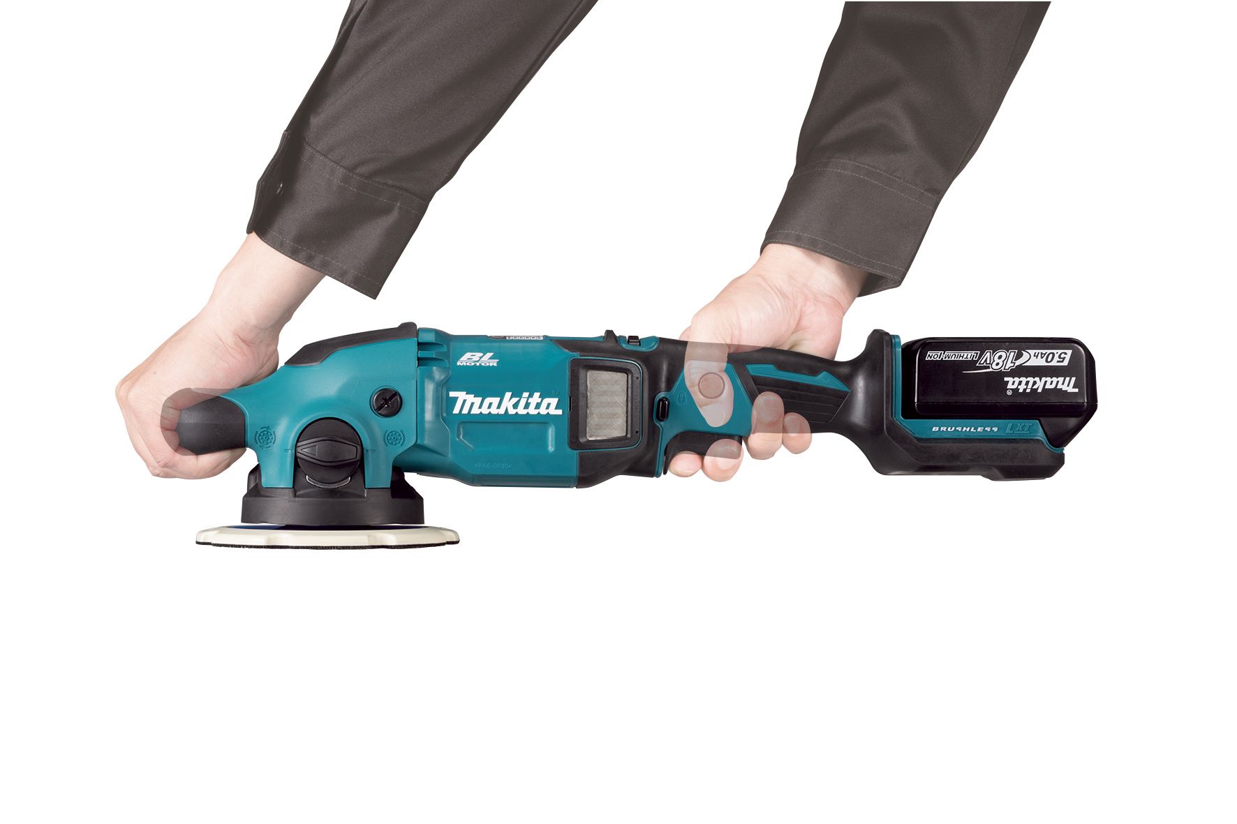 The rotating speed can be adjusted on a scale of 1–5 (0–780 min-1). The machine offers the choice of two polishing modes: random orbit with forced rotation and random orbit. The random orbit with forced rotation mode can be used for example to spread polishing paste or wax. The random orbit action is used for polishing. Thanks to its finishing mode with a reduced rotation speed (0–600 min-1), the machine can also be used for fine finishing.