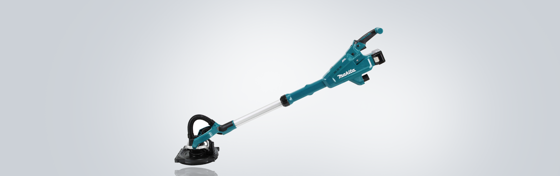 Unlike many other machines available on the market, Makita’s drywall sander is equipped with a smartly designed pad guard to enable sanding around the edges. In addition, the pad guard has a removable top part, which covers rolls that spin sideways. The rolls can be supported against the ceiling for sanding close to the corners of walls and ceilings.