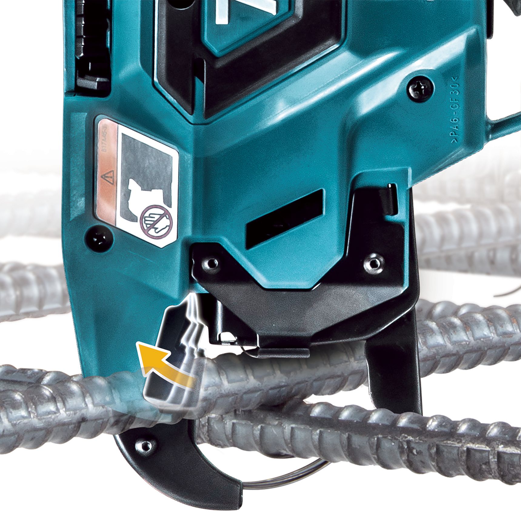 The machine’s brushless motor ensures that the battery lasts longer and in tests, a single charge has produced up to 5,300 ties with a 5.0 Ah battery. This translates to about 44 wire reels. The test result was achieved with two 10 mm rebars tied crosswise.