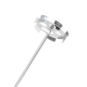 The mixing drill’s runtime depends on the size of the mixing paddle and the viscosity of the material being mixed. With the standard 165 mm paddle, runtime at full speed with a 5.0 Ah battery is about 25 minutes when mixing paint. Working with concrete, about 4 or 5 bags of S-100 concrete can be mixed on a single charge.