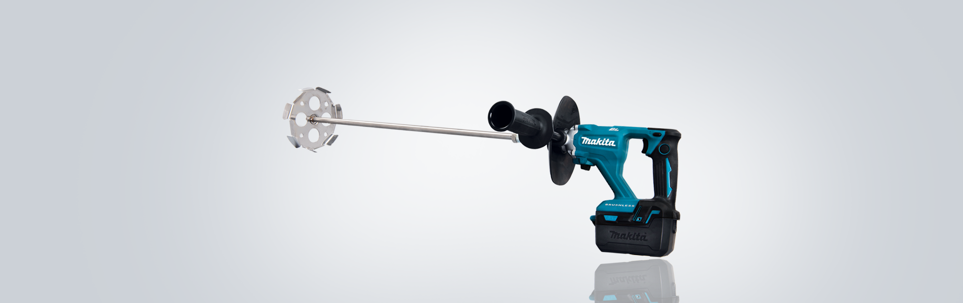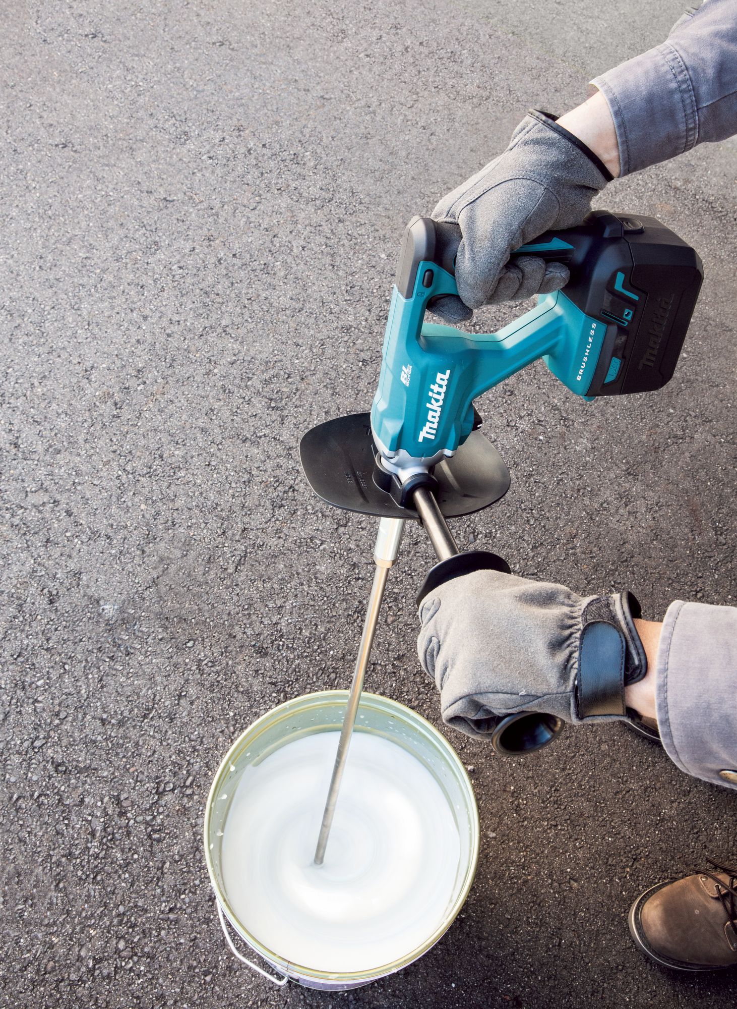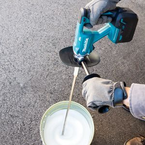 The mixing drill is available as a tool only version (DUT130Z) without a battery or charger. Standard accessories include a side grip, a 165 mm paddle suitable for mixing paint and a carry case.