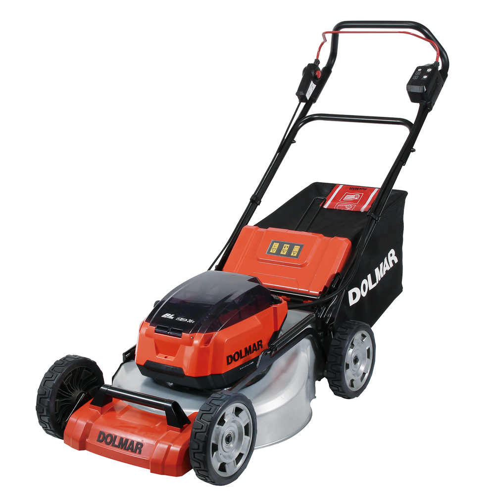 Powerful cordless lawnmower cutting, collecting, mulching and side discharge. Central cutting height adjustment and ball-bearing wheels, cutting width 53 cm. The engine has load sensing and a slot for four batteries, with a recommended cutting area of 2000 m².