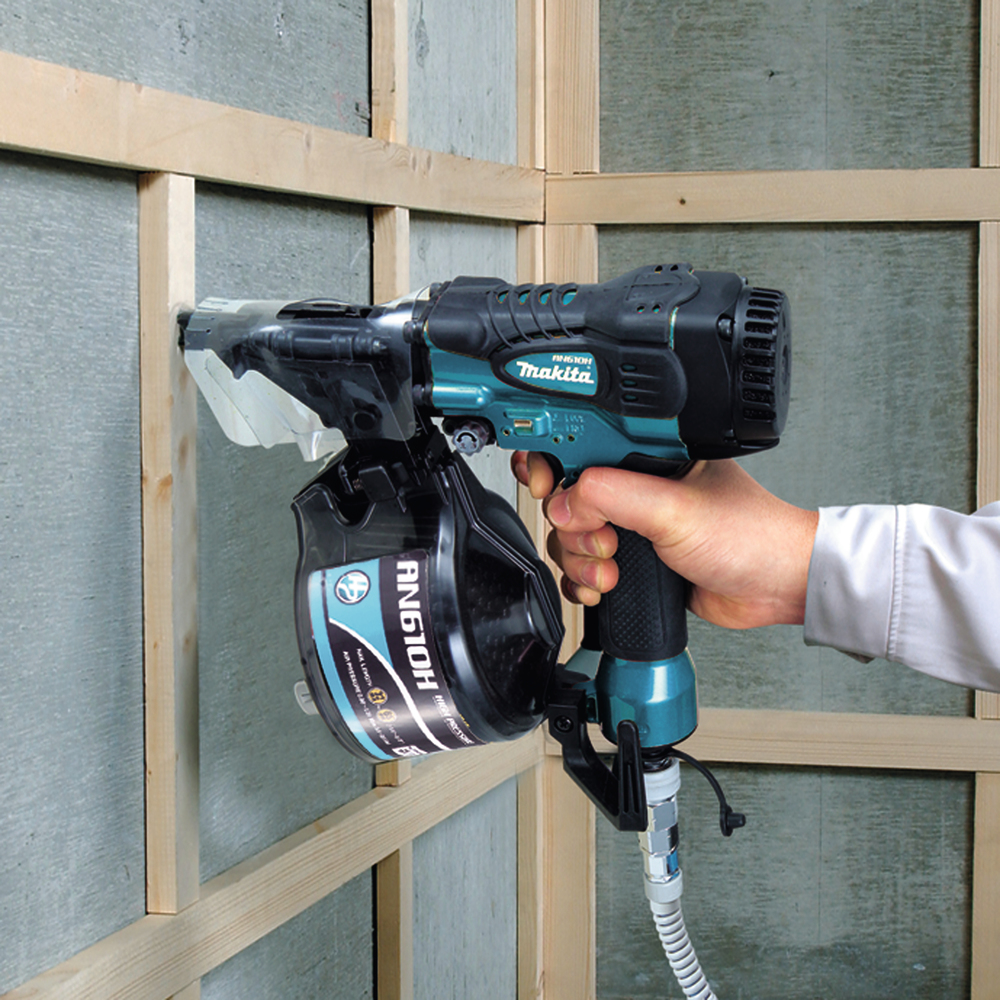 A compact siding coil nailer for construction and packing applications and installing wood shingle. Suitable nailsizes: Wire-Collated Coil Nail 32 - 65 mm and Sheet-Collated Coil Nail 32 - 50 mm. Depth adjustment and option for sequential and contact nailing. No need for continuous hose lubrication.