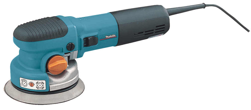 Eccentric sander with eccentric movement for free and forced action for a wide variety of grinding and polishing jobs. Dust removal through holes in sanding paper. Grinding wheel diameter 150 mm