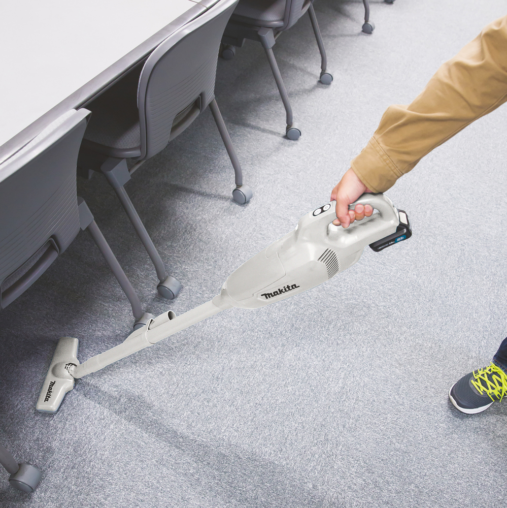 This silent vacuum cleaner with high suction power and an LED light is ideal for removing dirt and dust from the floor, staircases, jobsite or vehicle. Run time with a 4.0Ah battery is up to 40 minutes. A single 2.0Ah battery and a charger.