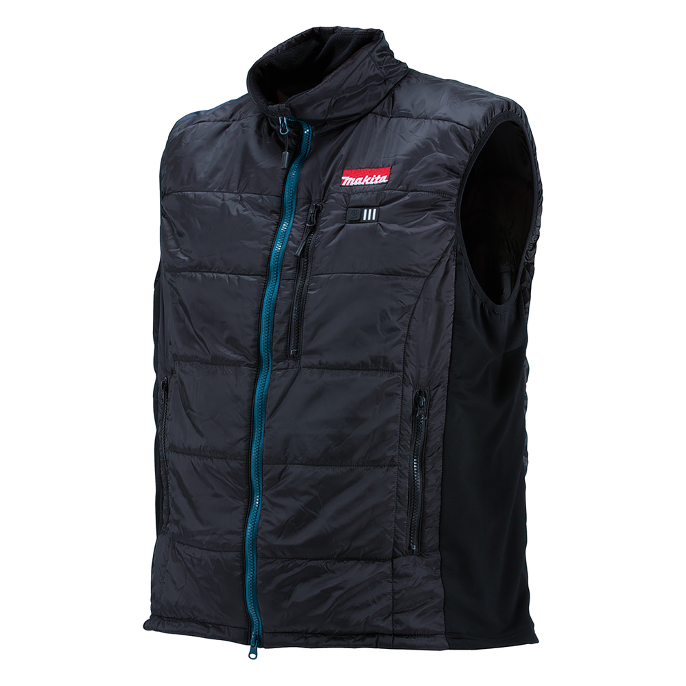 A heated vest with a 12V max CXT battery for harsh conditions. The water-repellent material protects against light rain. Heating elements on shoulders and back, three heating settings. The run time with a 4.0Ah battery is 4 / 7,5 / 14 h, depending on heating level.