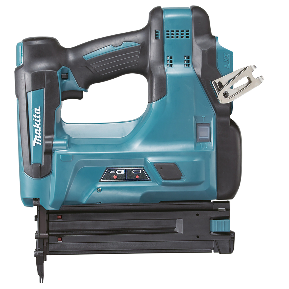 A hose-free brad nailer. An in-built compressor provides a nailing touch similar to that offered by a pneumatic nailer. Ideal for finish and trim work, including installing panels and trimmings. The nailer is compatible with 1,2 mm nails with a length of 15 – 50 mm. Tool only in a Makpac case, battery and charger not included.