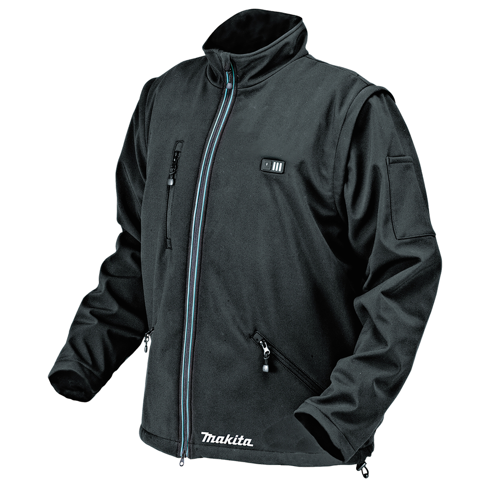 Heated Jacket with a 14,4 V or 18 V LXT battery for harsh conditions. The jacket’s water-repellent material protects against light rain. Heating elements on chest and back, three heating settings. The run time with a 5.0 Ah battery is 8 / 16 / 28 h, depending on heating level. Detachable sleeves.