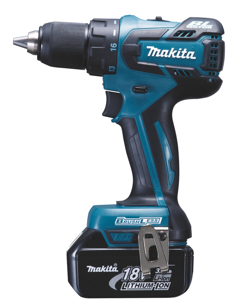 Powerful carbon brushless machine for screwing and drilling in two speed ranges. The maximum torque is 45/25 Nm. The machine is a versatile aid for installers, service technicians or builders, for example. The machine has an LED light. Two 3,0 Ah batteries and a quick charger in a Makpac case.