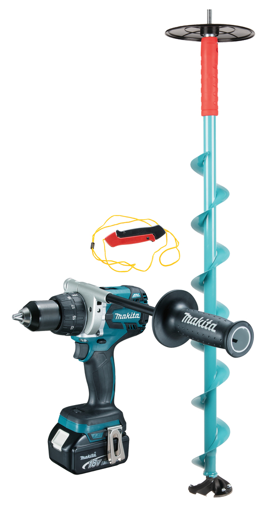 110 mm ice auger and brushless drill driver for heavy-duty use