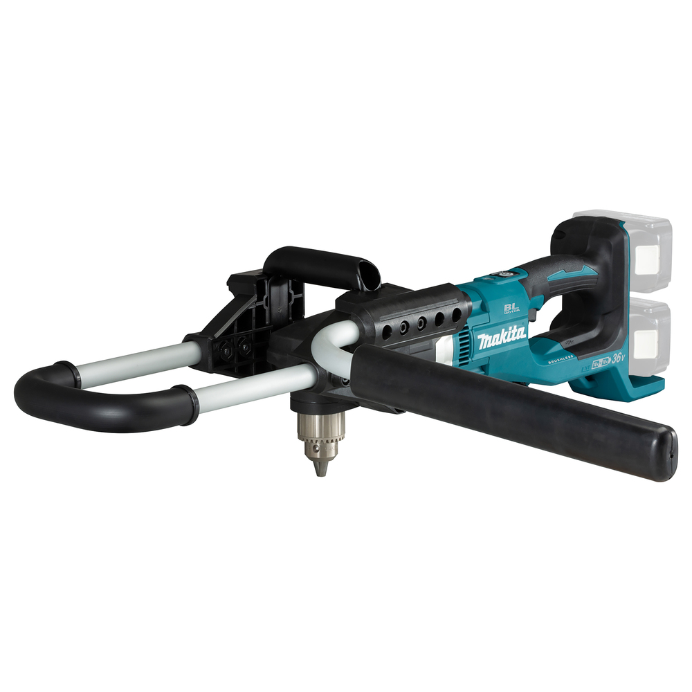 Drilling holes to the ground has never been this easy! Makita's new DDG460 earth auger drill is powerful and lightweight (8,2 kg with 2 x BL1860B 6 Ah batteries) tool for drilling soil.Brushless motor delivers up to 1 400 RPM, speed can be selected by two settings; 0 – 350 RPM and 0 – 1 400 RPM and reversing switch for helping jammed auger bit.
