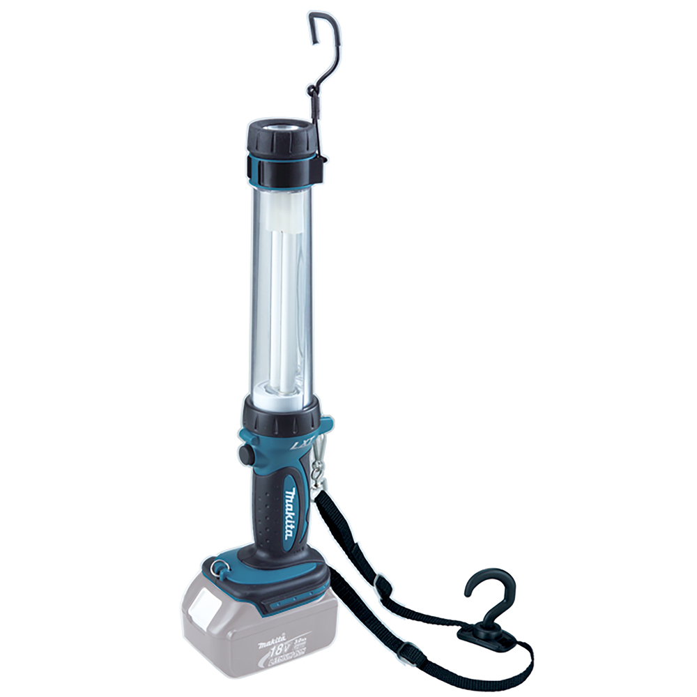 Dual purpose action; use as an flashlight or lantern. Uses 14,4V or 18V LXT® batteries. Continuous use as an fluorescent light 200 min and as an flashlight 900 min. Hook and strap included. Body only, battery and charger not included.