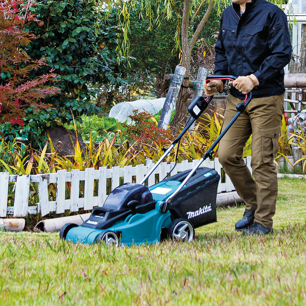 A silent battery-powered lawn mower with a plastic cover that is light to operate. It runs on two 18V LXT batteries that provide a voltage of 36V. The lawn mower is easy to use and is ideal for small gardens. It offers a cutting width of 38 cm and has a grass box. Tool only, battery and charger not included.