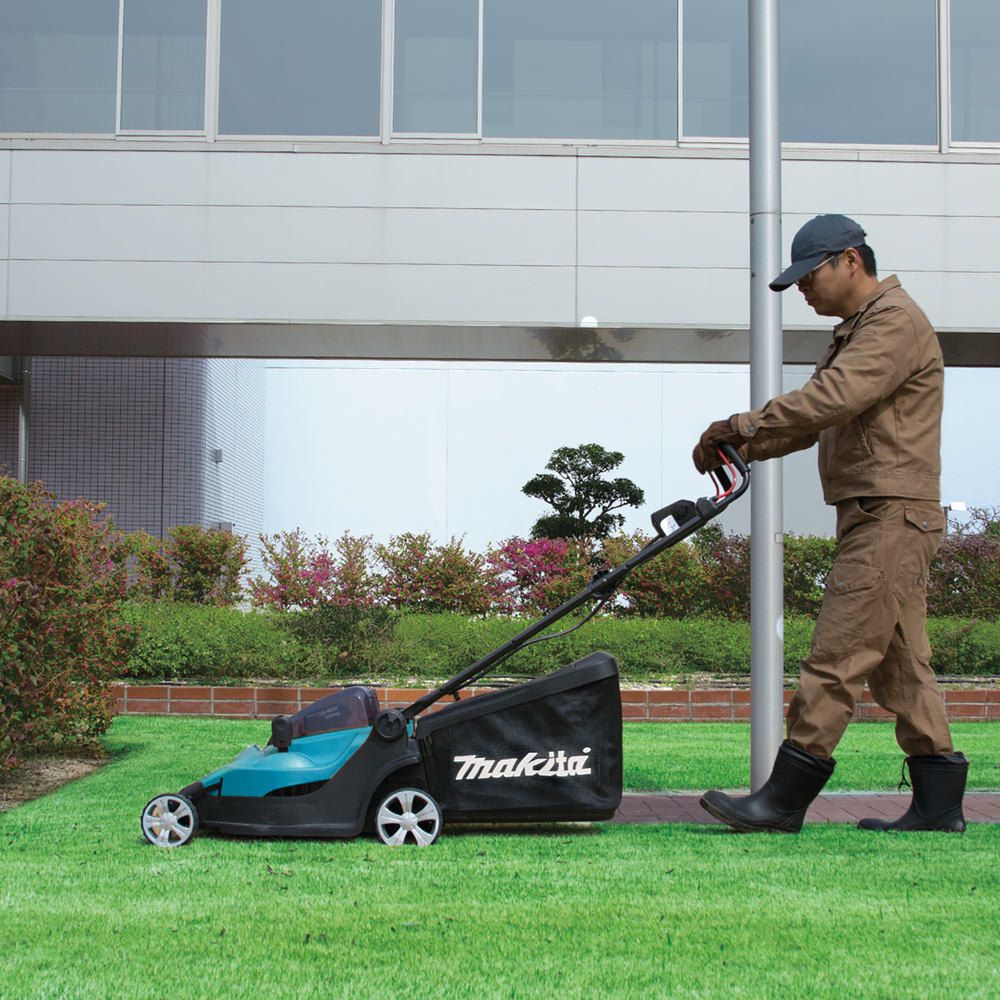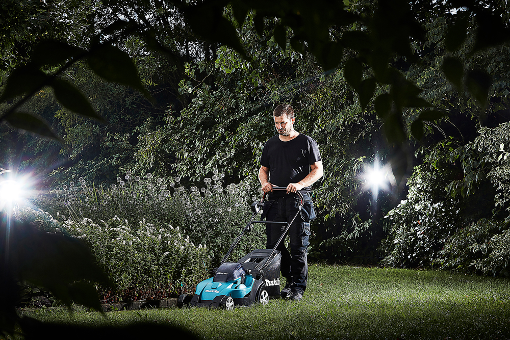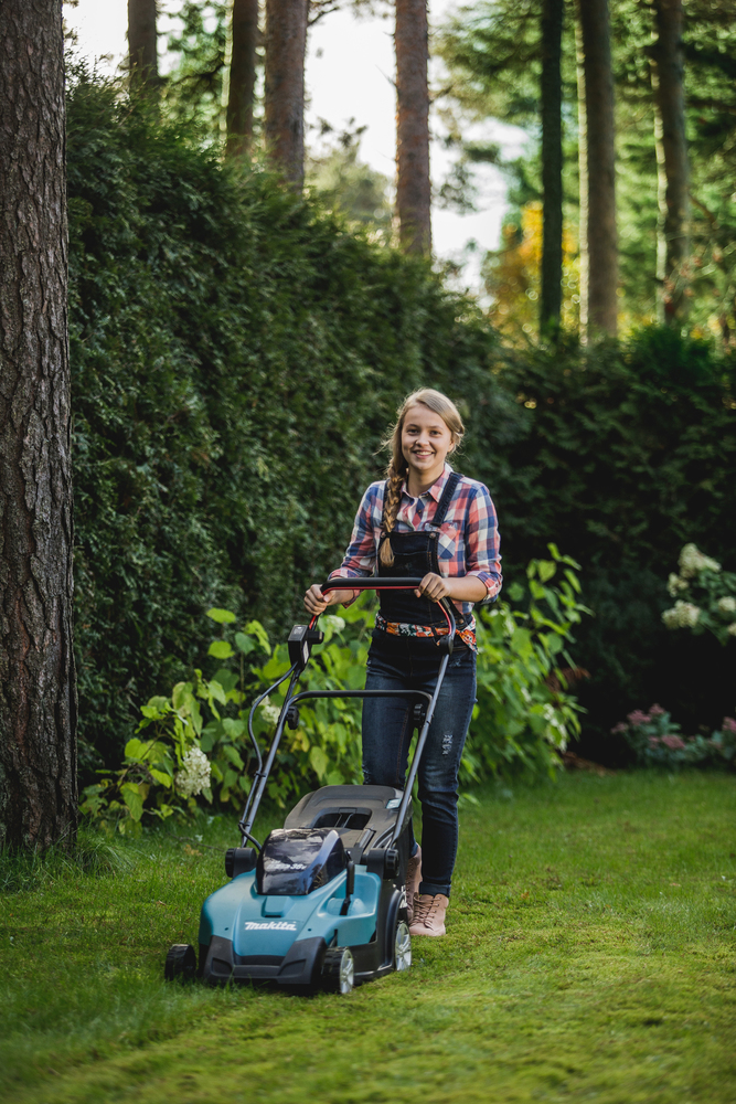 A silent battery-powered lawn mower with a plastic cover that is light to operate. It runs on two 18V LXT batteries that provide a voltage of 36V. The lawn mower is easy to use and is ideal for small gardens. It offers a cutting width of 43 cm and has a grass box. Two 3.0Ah batteries and a two-port charger.