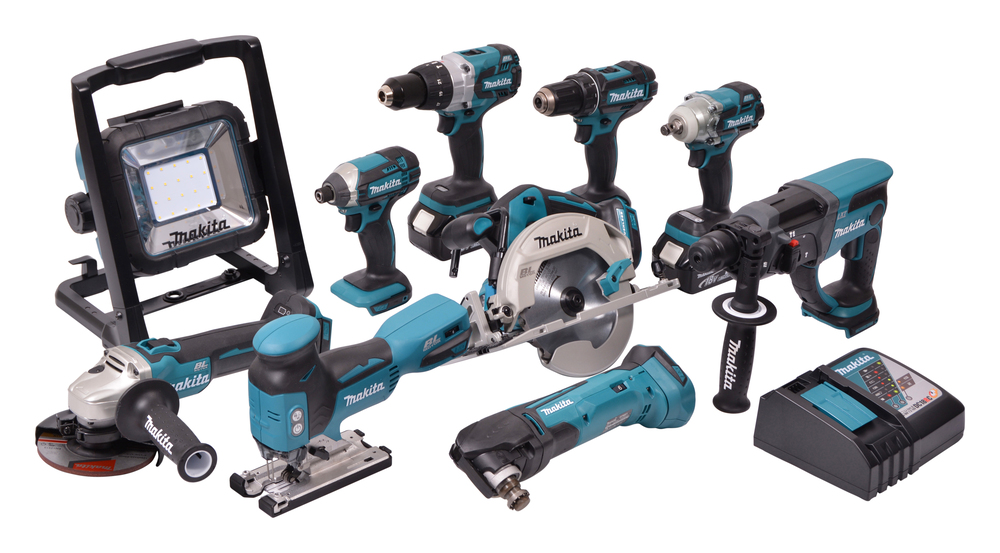 An extensive kit with ten brushless and cordless 18V LXT tools for heavy-duty use. Ideal as a starter set for a carpenter. Comes with three 4.0Ah batteries and a rapid charger. Incudes a bag for the storage and transport of the tools.
