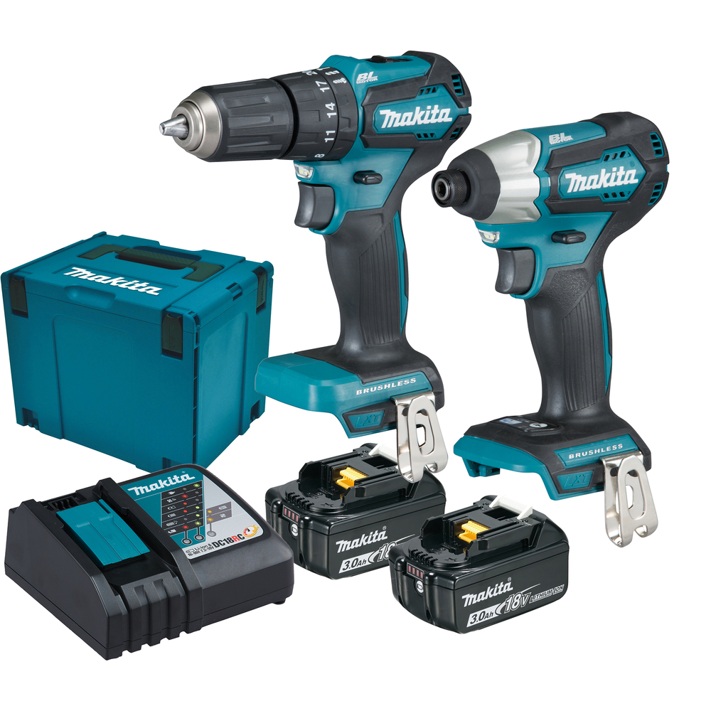 A high-quality two-piece cordless and brushless 18V LXT kit for daily use on building and renovation sites. Includes the DHP483 impact drill, the DTD155 impact driver, two 3.0Ah batteries and a rapid charger in a Makpac case.