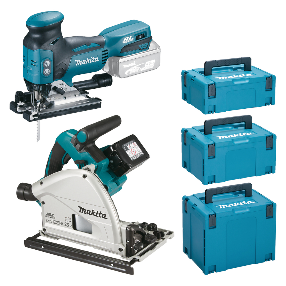 Precise brushless plunge cut circular saw for professional use and efficient brushless jigsaw with tool-less blade change.