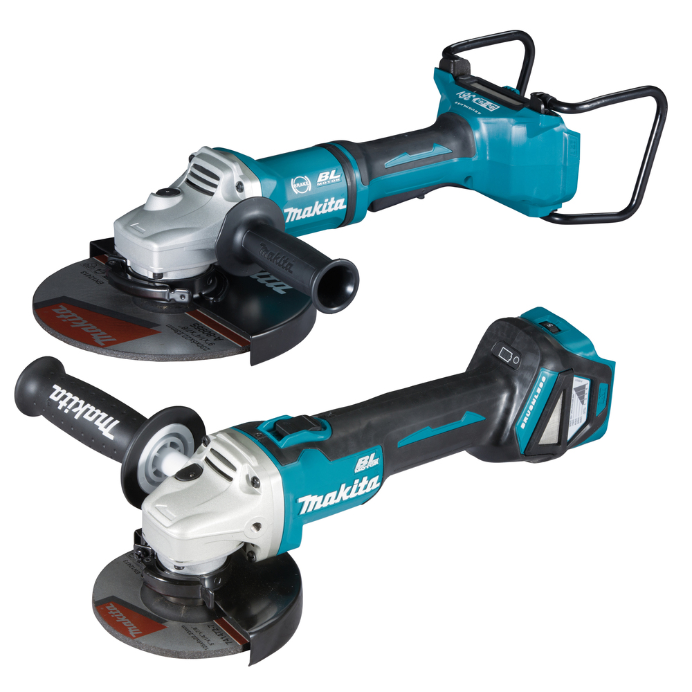 Angle grinder set consisting of angle grinders for small and largerd applications. DGA900 is meant for larger applications and tough construction site use. Smaller grinder DGA511 with a slim body and low weight for lighter grinding and cutting applications. Tools come in a case, battery and charger not included.