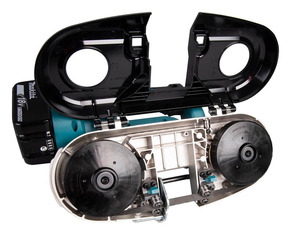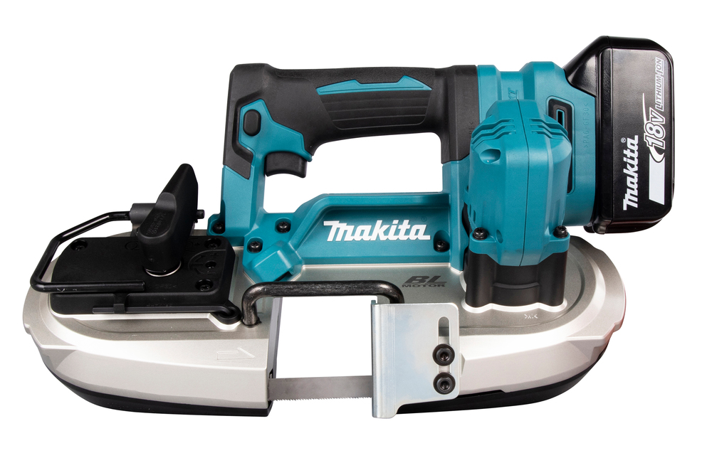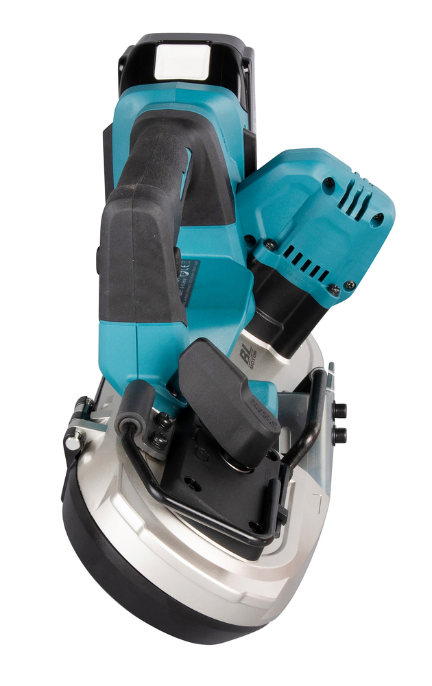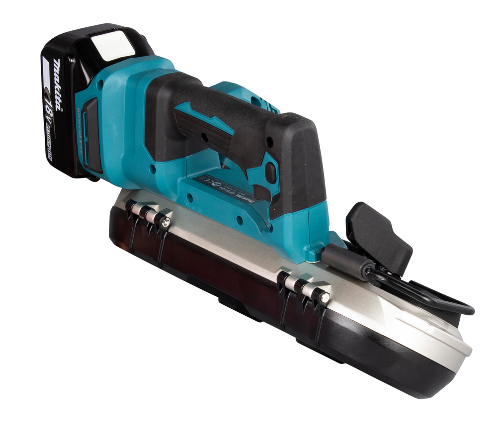 Cordless band saw for non-sparking metal cutting. Sawing capacity 51 x 51 mm. Brushless motor with adjustable speed 0–3.2 m / s. Sturdy and torsionally rigid aluminum frame ensures straight sawing. The machine's LED light illuminates the work area
