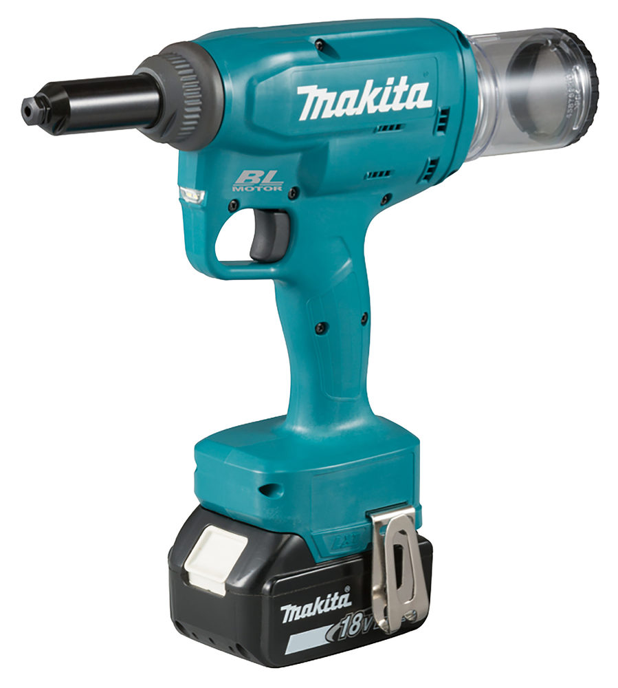 DRV150 is a powerful and convenient riveter that does not get tired even during tough jobs. It's brushless motor provides a pulling force of 10 kN and a stroke length of 25 mm, which makes it possible to install most rivets in one stroke. The work amount of the machine is as high as 2300 pieces of 4,8 mm rivets on a single fully charged 5,0 Ah battery, making the riveter a viable choice even for industrial applications.The machine features a rivet holder mechanishm, which holds the rivet still even when the machine is pointed downward. Thee transparent container collects spent mandrels, so it's easy to keep track of their amount and to maintain a clean job site. The riveter is compatible with rivet's ranging from 2,4 mm to 4,8 mm in diameter.The machine only weighs 2,2 kg with a battery making it convenient to use. It's jaw case enables tight space operation. Just as the riveter provides a high capacity, so can you work with reduced fatigue thanks to it's innovative design.User benefits