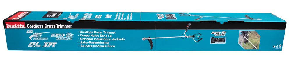 DUR369 is made for high demand grass trimming. It's excellent ability to perform is powered by a brushless motor, which make it possible for DUR369 to reach a RPM as high as 7000. Automatic torque Drive Technology (ADT) adjusts the speed for optimum performance and battery life. Connect it to a portable power pack for an even longer run time!Not only is DUR369 powerful, it's also convenient. Simply load it with two 18V LXT® batteries and its ready to go. It has a soft start feature for smooth start-ups and a reverse rotation system to quickly clearing of the trimmer head. Its ergonomic harness makes even a long trimming session feel less tiring.Thanks to its low noise level, the grass trimmer is an ideal choice for residential areas and public spaces. It's a true modern machine with zero emissions and reduced maintenance.User benefits