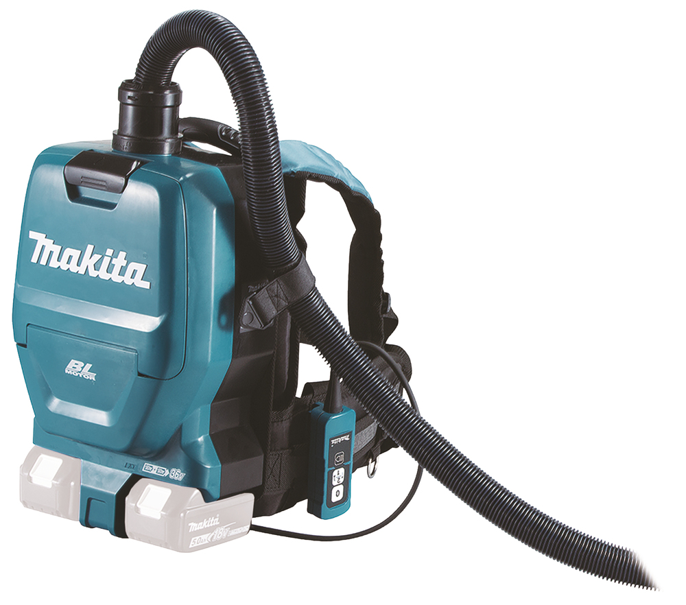 A backpack vacuum cleaner with an adjustable harness and waist strap to make mobile work lighter. Efficient HEPA filter and 2 l dust bag. Two power settings and a separate LED light. Intended to be connected to a machine. Tool only, battery and charger not included.