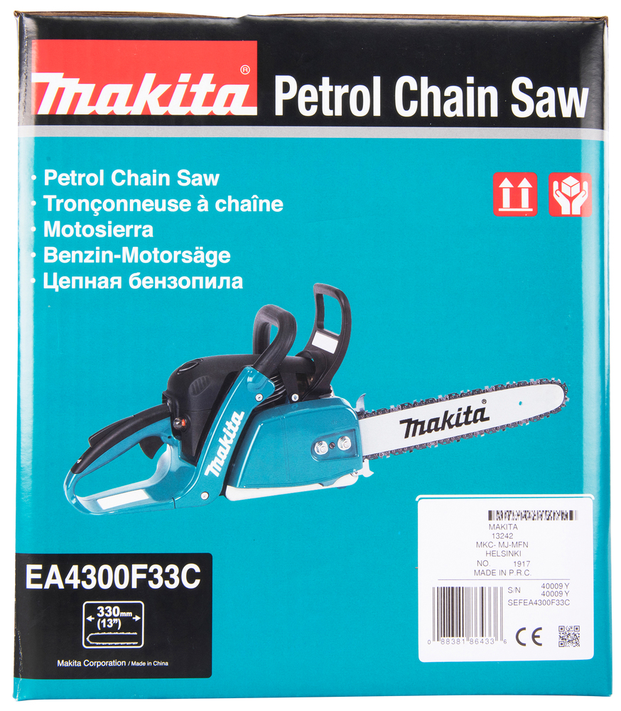 A powerful and easy-to-use chainsaw for general use. Thanks to its modern 2-stroke engine, the chainsaw has low consumption and emission levels. The tool has a 330 mm (13") guide bar and a powerful 2,2 kW engine that generates a chain speed of 24,3 m/s. Easy start function.
