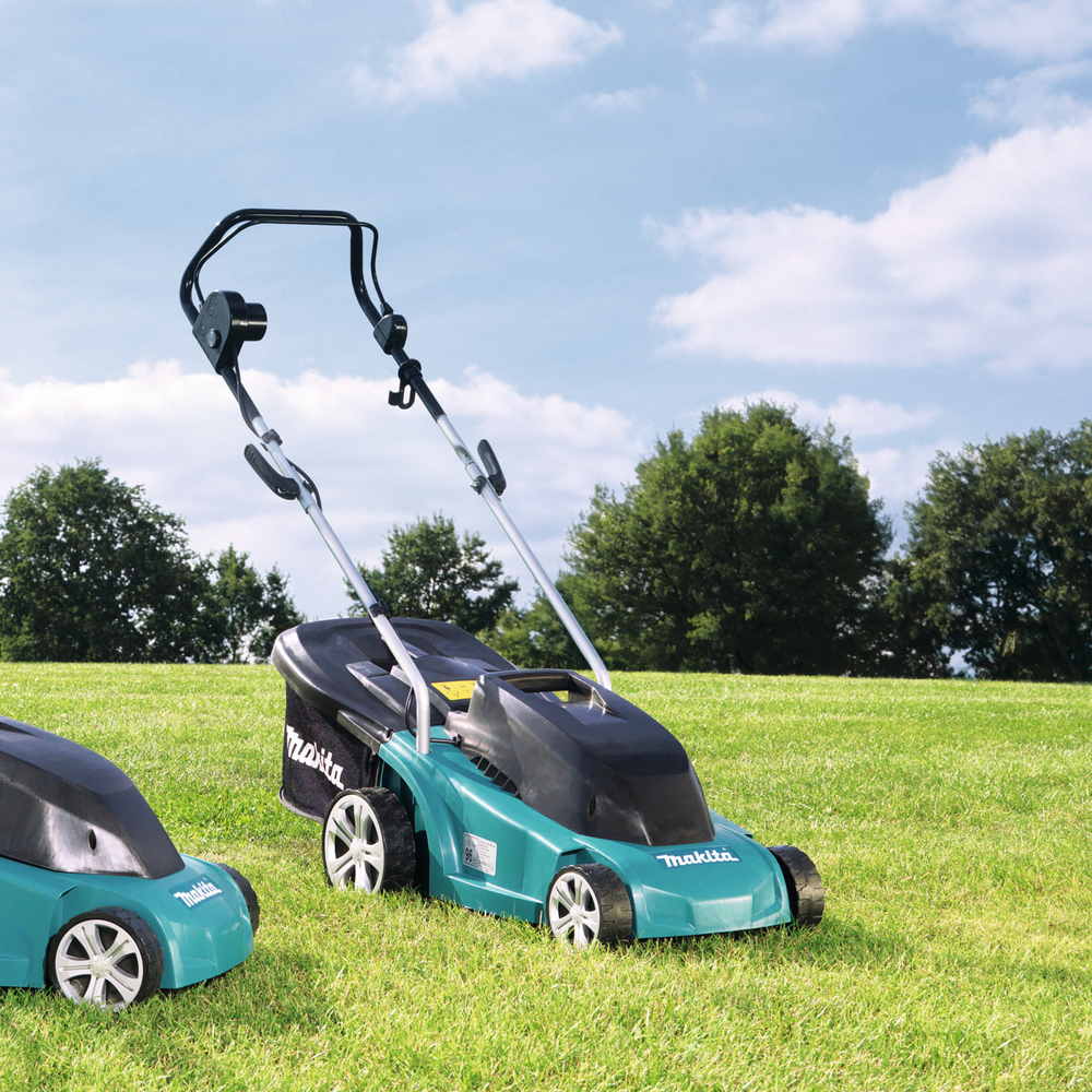 A silent electric lawn mower with a plastic cover that is light to operate. The lawn mower is easy to use and is ideal for small gardens. A powerful 1 100 W induction motor, cutting width of 33 cm and a grass box.