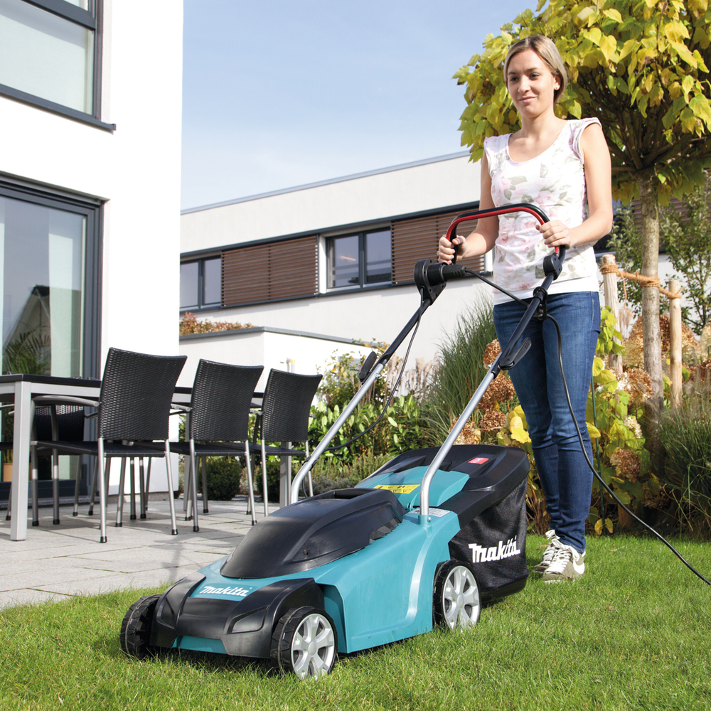 A silent electric lawn mower with a plastic cover that is light to operate. The lawn mower is easy to use and is ideal for small gardens. A powerful 1 100 W induction motor, cutting width of 33 cm and a grass box.