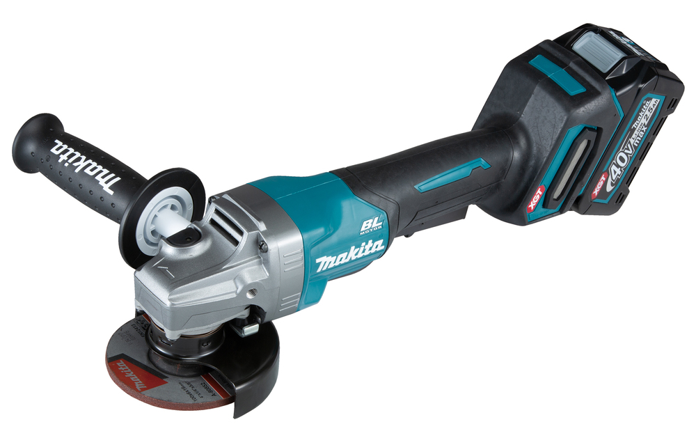 Paddle switch angle grinder with brushless motor and a 100 mm wheel for demanding professional use. Tool is powered by 40V max XGT® battery. Motor delivers 8 500 min⁻¹. Excellent choice for continuous heavy-duty work. Two 2,5 Ah batteries and rapid charger in a Makpac case.