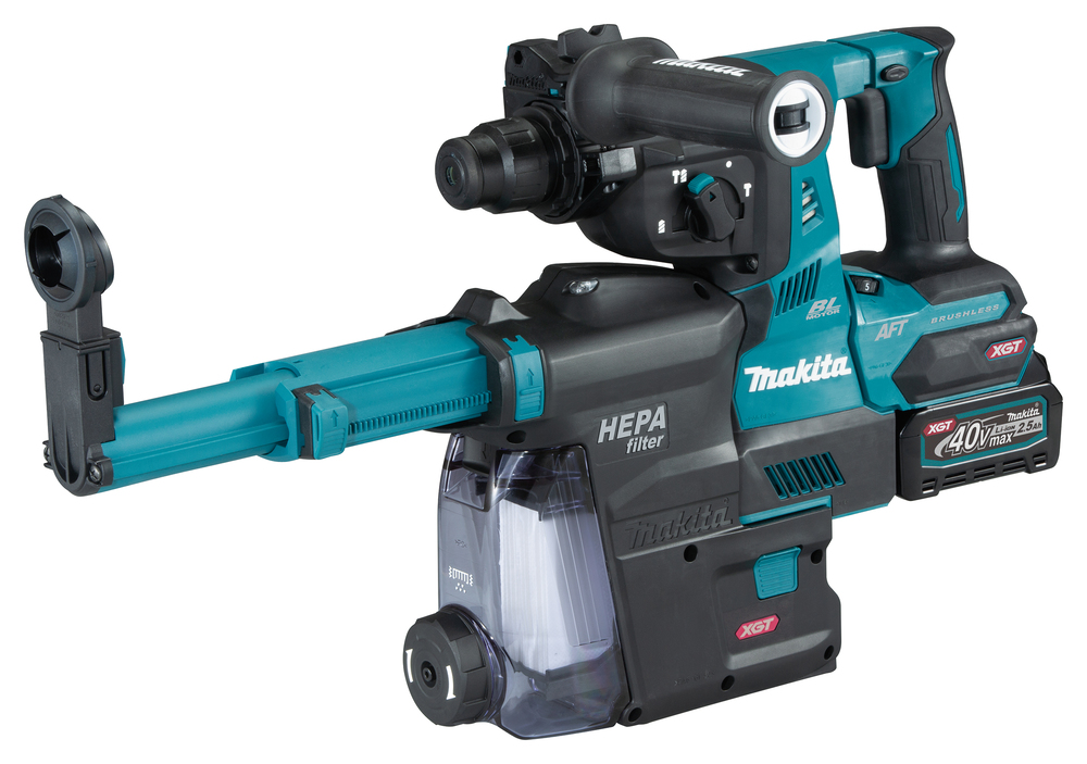 An efficient tool for SDS-Plus bits with AVT (anti-vibration technology) and remote dust extraction start. 40V max XGT batteries provide a high voltage. For impact and unstressed drilling and chipping. Speed range of 0 – 980 min-1. Impact energy of 2,8 J, max. Capacity of 28 mm in concrete.