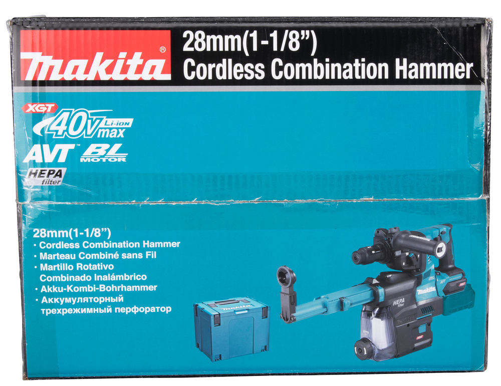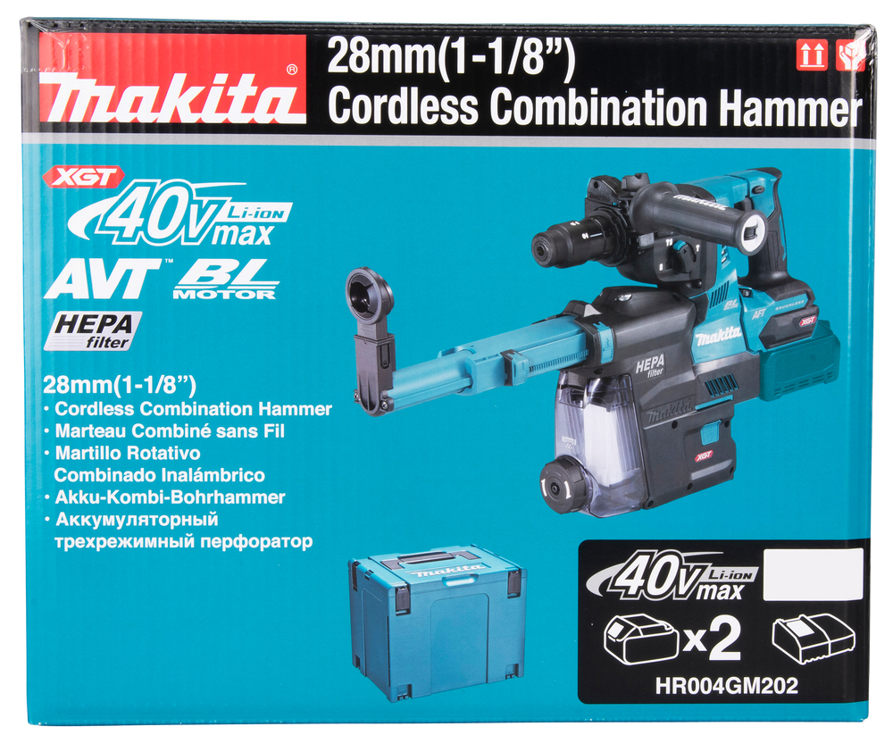 Efficient combination hammer delivers high power for professional work. The tool is lightweight and the tool balance is redesigned for increased operability. Equipped with Anti vibration technology (AVT). Two 4.0 Ah batteries, rapid charger and dust extraction system in a Makpac case.