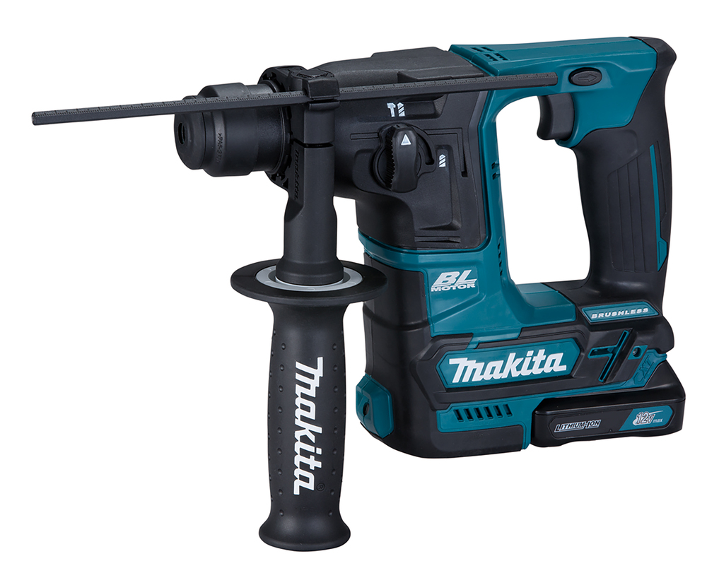 A small and light rotary hammer with an anti-vibration handle, accepts SDS-Plus bits. Suitable for drilling and impact drilling. Speed range of 0 – 680 min-1. Impact energy of 1,1 J and max. drilling capacity of 16 mm in concrete. Two 2,0 Ah batteries and a charger in a case.