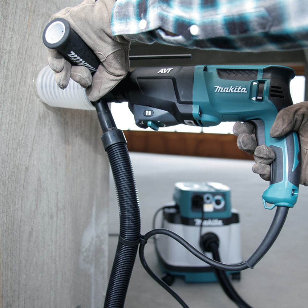 Efficient combination hammer with Anti-Vibration Technology (AVT) compatible with SDS-Plus bits. Suitable for for "Rotation Only", "Hammering with Rotation" or "Hammering Only". Motor capacity of 800 W and speed can be adjusted between 0 and 1 200 min-1 from a switch. Impact energy of 2,4 J and optimal drilling range of 8 – 18 mm in concrete. Max. drilling capacity of 26 mm in concrete.