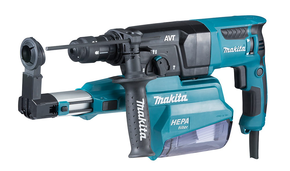 A robust rotary hammer for SDS-Plus bits with an AVT anti-vibration system and dust bag. Suitable for impact and unstressed drilling, and chipping. 800 W output and speed can be adjusted between 0 and 1 200 min-1 from a switch. Impact energy of 2,2 J and optimal drilling range of 8 – 18 mm in concrete, with a max. capacity of 26 mm. Comes in a case.