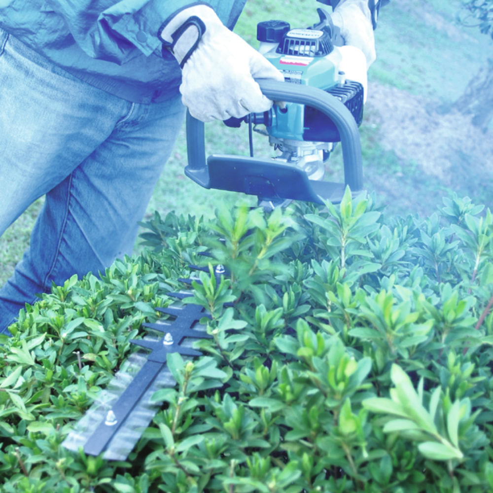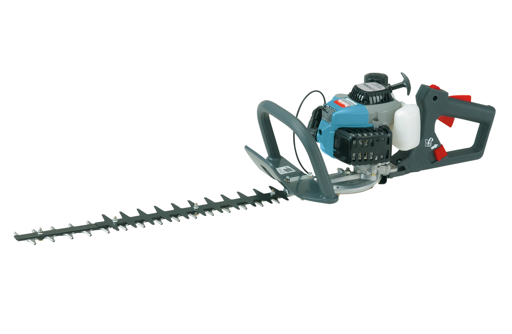 2-stroke hedge trimmer with 0,62 kW power and 49 cm blade length. The trimmer works great for long hedges, for example. The rear handle has a firm rubberized grip.