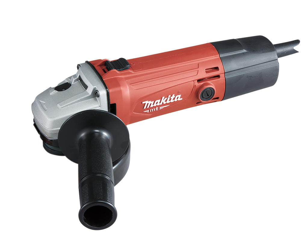 Compact angle grinder for cutting and grinding with anti-restart function.