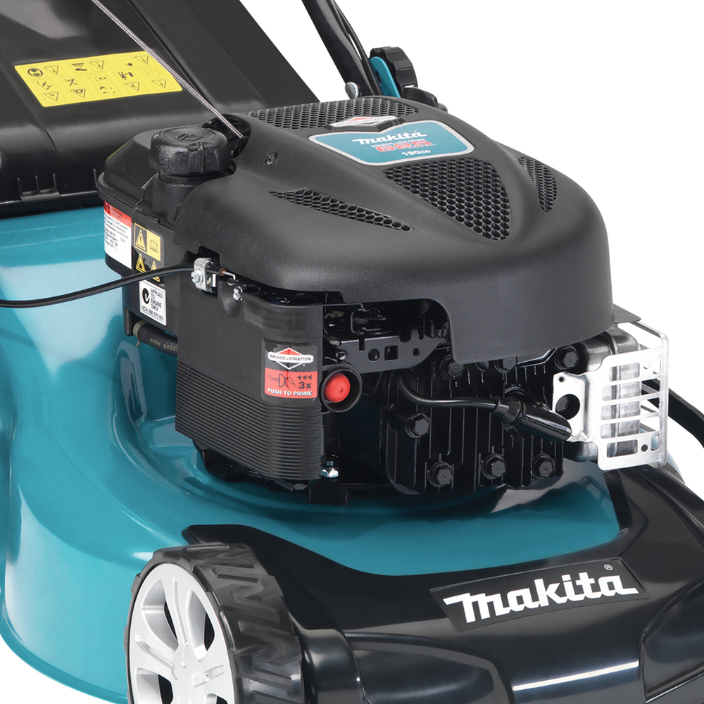A versatile mulching or collecting petrol lawn mower with a 190 cm³ motor. A cutting width of 46 cm and centralised height adjustment. Wheels equipped with ball-bearings. Recommended mowing area up to 1 200 m²