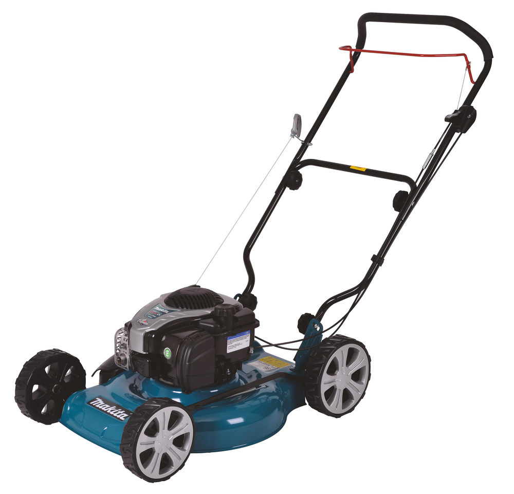A versatile mulching or side discharging petrol lawn mower with a 140 cm³ motor. A cutting width of 48 cm and centralized height adjustment. Lawn mower is equipped with ball-bearing wheels