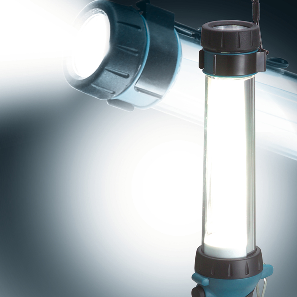 Dual purpose action; use as an flashlight or lantern. Uses 14,4V or 18V LXT® batteries. Continuous use as an fluorescent light 200 min and as an flashlight 900 min. Hook and strap included. Body only, battery and charger not included.