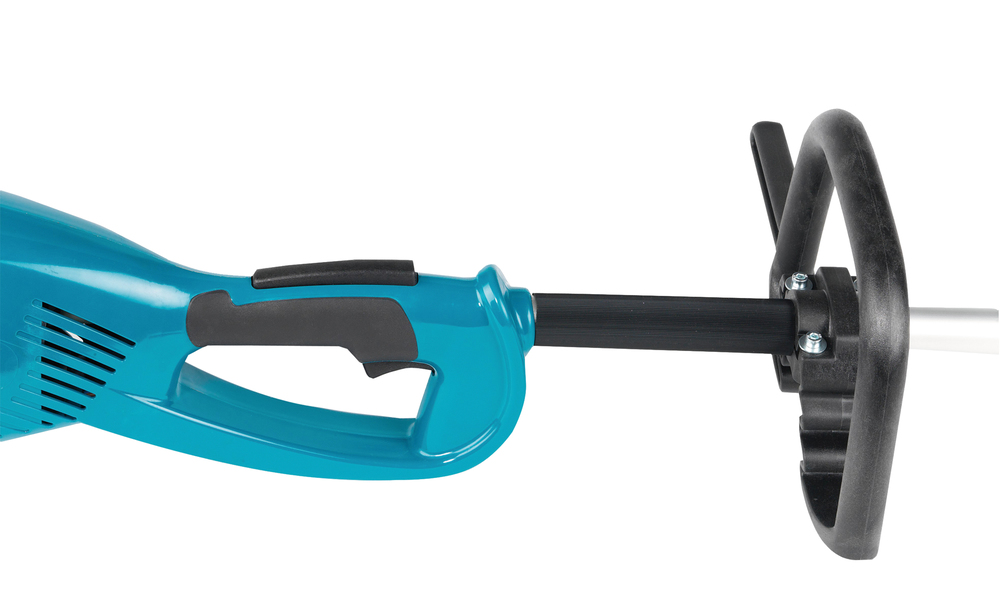 The trimmer has a 2-line head which cuts easily through grass around borders, edges, and fences. It also has a long 10 m cord to allow an extended reach to far-away spots. To ensure you have good control, it features a wide trigger and loop handle which can be fitted either way, making it suitable for both right and left handed people. This model is compact and quiet, ideal for occasional users.